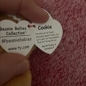This charming Ty stuffed animal features a delightful gingerbread design with a soft brown body and striking blue eyes. Its plush texture makes it perfect for cuddling, while the cute design adds a whimsical touch to any collection. Ideal for display or play, this plush toy is a must-have for fans of adorable stuffed animals.
