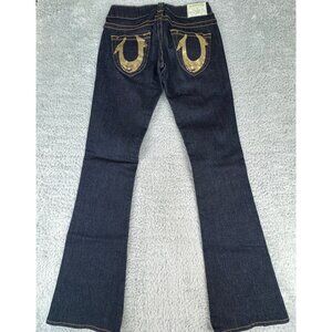 True Religion Bobby Womens 25 Dark Wash Flare Jeans NWOT White Gold Tag Made-USA
