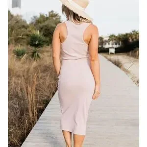 Step out in style with this elegant pale pink razorback tank dress. Perfect for any occasion, this dress offers a chic and comfortable fit. A must-have addition to your wardrobe.