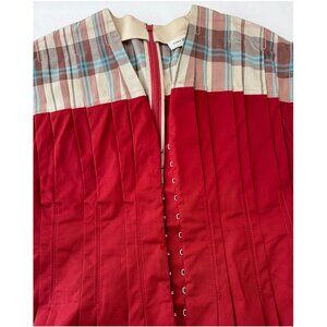 Color: "McCardell Madras Plaid"- Madras plaid with a red pin tuck corset