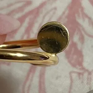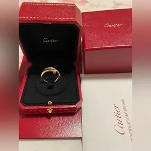 Beautiful classic Cartier Just un Clou gold ring in size 7. Sadly I have to let this beautiful piece go. Please note that the ring has some minor scratches from normal wear. The photo showing the scratches is super magnified. I could not get a picture of the serial number on the ring, however PM will authenticate. Comes with all original packaging. Please no low ball offers and let me know if any questions. No trades. Final sale. Thank you! 🙏🏼💕