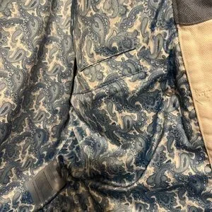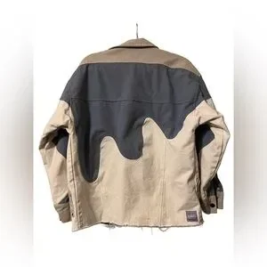 The design was influenced by our Theta brain wave frequency which is connected to ones creativity, intuition, and spiritual awareness. The silky satin paisley lining was inspired from the Zoroastrian symbol of a cypress tree combined with a floral spray, to represent life and eternity. As we wear this jacket, it is our priority to forever keep these core values at the forefront of our daily routines. As the bottom hem of the jacket frays throughout time telling the wearers story, the purpose remains the same.The chosen color palette was influenced from west coast colors.