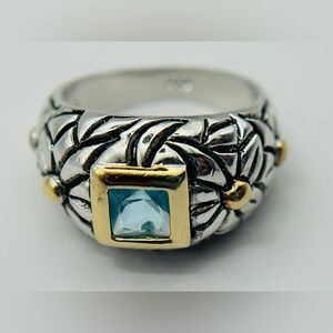 EUC sz8.25 JH Insp. 2CT BEZEL blue stone 925/18k FLORAL ORNATE DOME ring