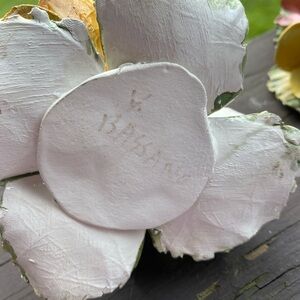 Pair of Vintage Ceramic Flower Candle Holders - Yellow and Pink