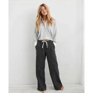 Aerie Women's Smoked Gray Me-Day Tie Waist Wide Leg Casual Pant