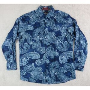 Mens Bugatchi Uomo Long Sleeve Button Front Shirt Size L Paisley Blue All Over