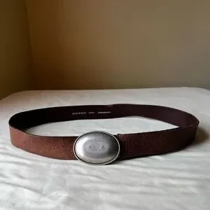 Vintage Y2K Brown Leather Belt With Silver Oval Buckle Boho Western Casual 36