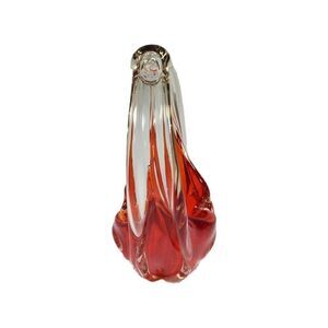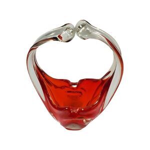 Vintage Red Orange Art Glass Basket 7" Tall Trinket Jewelry Keys Flower Abstract.