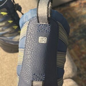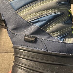 Durable Merrell boots with navy and black design. Ideal for winter adventures.