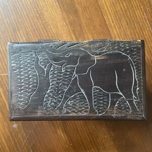 This product is a hand-carved wooden box featuring an elephant and rhino design, with a marble jar inside. It is a vintage souvenir from Walt Disney World, showcasing intricate craftsmanship and a unique Disney-themed design. Made in the United States, this collectible item is a must-have for any Disneyana collector or fan of unique Disney memorabilia. Perfect for displaying or adding to a Disney-themed collection, this piece captures the magic and nostalgia of Disney's iconic theme park.