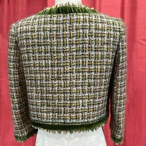 Italian Designer ISOLAMARRAS Vintage Green Yellow Tweed Blazer with Fringe Trim