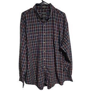 Van Heusen Wrinkle Free Button Up Shirt Mens Size XL Red Blue Plaid Long Sleeve