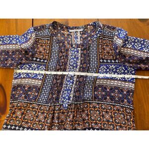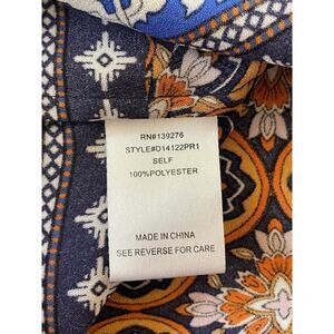 Daniel Rainn Women Medium Blouse Pleated Buttons Blue Orange Boho StyleD14122PR1