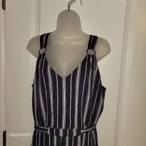 The No Boundaries Navy and White Striped Jumpsuit is designed for those who seek effortless style fused with incredible comfort. Ideal for casual outings, summer evenings, or a dressed-down look for brunch, this jumpsuit is both chic and practical. With its classic striped design and versatile color palette, it suits a range of occasions and aesthetics.