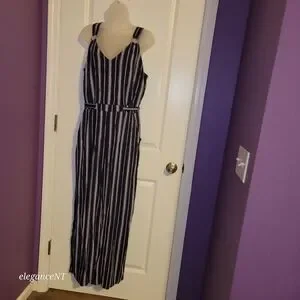 No Boundaries Navy and White Striped Jumpsuit Sx: XL (15-17)