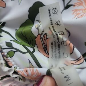 This Zaful swim top features a charming white and pink color palette with a stylish ruffled design. Its cut-out details add a modern twist to this classic piece. Size m us 6 85% polyester 15% spandex