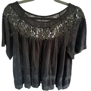 Free People Dandelion Pointelle Knit Blouse Black Lace Top