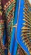 Bold jacket with striking multicolor patterns. Features vibrant blue and intricate designs.