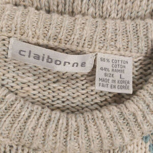 VTG Claiborne 100% Cotton Cream Blue Argyle Knit Mens Sweater Grandpacore Large