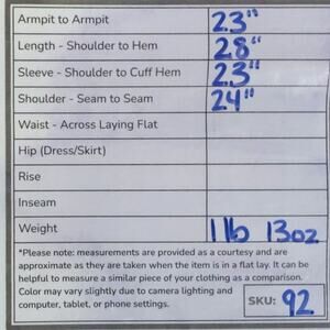 Gently used and in good condition. FLAW: There is a hole in the shoulder seam. See the last picture.