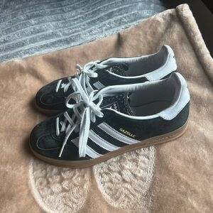 Classic Adidas Gazelle with black suede and white stripes. Gum sole adds a retro touch. Only worn a handful of times. Excellent condition.