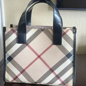 Burberry Black and Cream Mini Tote Bag with Signature Design