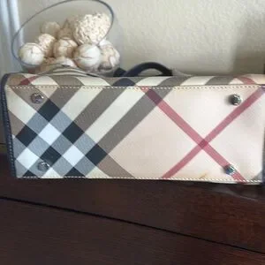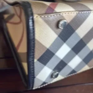This Burberry mini tote bag showcases a sophisticated black and cream color palette, featuring the brand's iconic plaid pattern. Crafted with a structured design and sturdy black leather handles, it offers both elegance and practicality for everyday use.