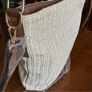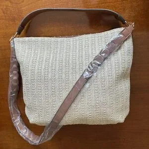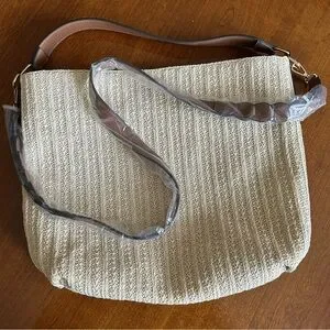 Kim Rogers Woven Straw Hobo Shoulder Bag w/ Removable Strap Tan/Natural NWOT