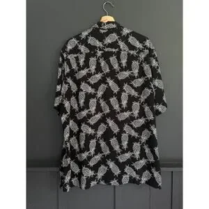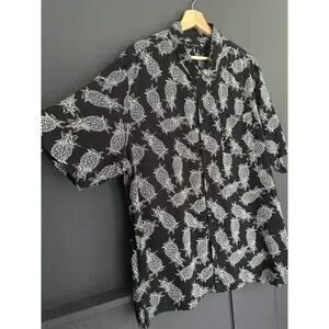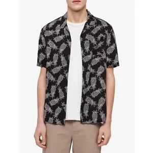 AllSaints Pineapple Short Sleeve Button Front Tailored Shirt Black White Sz XXL