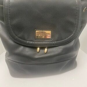 Marc New York Black Leather Backpack with Gold Accents
