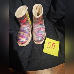 Rainbow Uggs Boots Womens Size 5 Plastic Cover Faux Fur