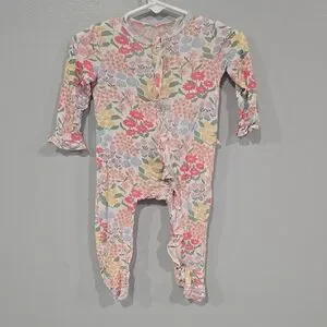 These charming footies from Little Me feature a delightful floral pattern in pink and red, offering full-body coverage with long sleeves and a round neckline. Perfect for keeping cozy during cooler weather, this one-piece ensures comfort and style.
