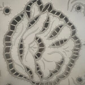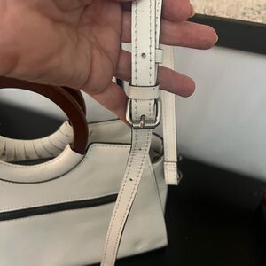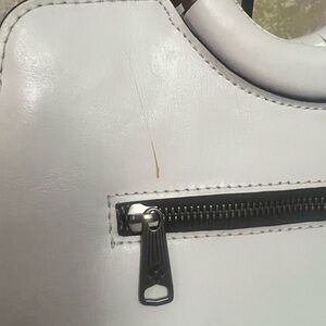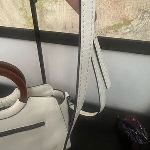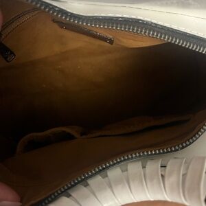 Isn’t she pretty? This is a beautiful white Patricia Nash summer bag. There is one call out on the back of the bag above the zipper. See items pictures as they are part of the description. Other than that she is clean! 12” L by about 12” from round handle drop and 5” wide x