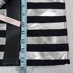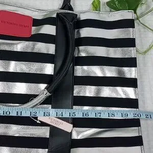 NWT Victoria's Secret Large Black/Silver Metallic Striped Tote Bag