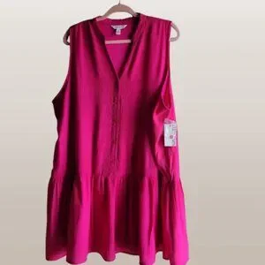 Women's Nine West Button Front Ruffle Hem Dress Size XXL in Gerbera Fuchsia NWT