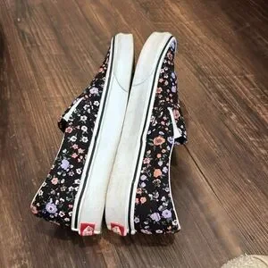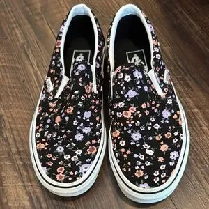 Vans purple and pink small flowers slip on shoes men’s 6.5 women’s 8
