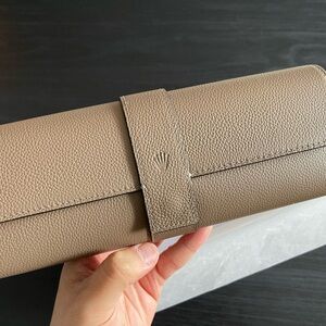 Brand new Rolex watch roll in taupe/grey Saffiano calf skin leather. 100% authentic Rolex gift with purchase item. Never used and full packaging included.