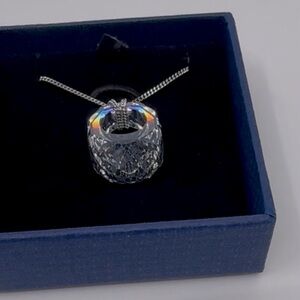 Exquisite Swarovski necklace features a miniature version of their iconic Nirvana ring on a rhodium-plated chain.