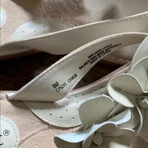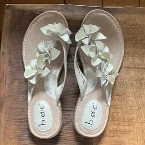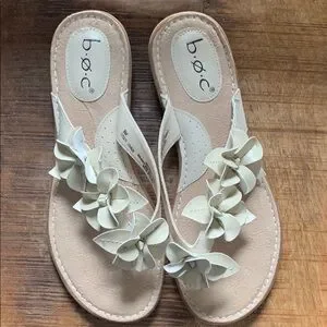 Elegant cream sandals with floral accents. Comfortable and stylish. Perfect for casual outings.