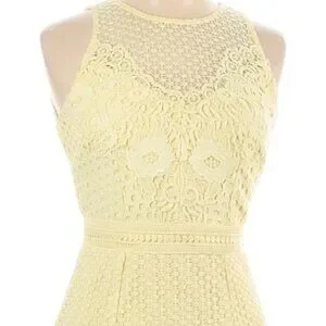 in perfect condition like new, Baby doll yellow lace sleeveless dress with back zipper and Keyhole with button and crysta