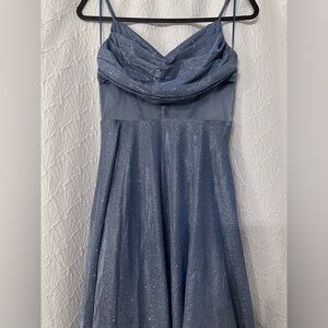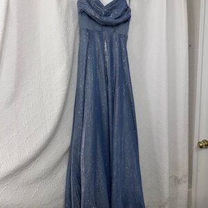 Used One’s. Step into elegance with this stunning blue gown from Fashion Nova, designed for prom and special nights out. The dress features a chic bustier top with spaghetti straps, creating a flattering silhouette. Its sleeveless design and flowing skirt add a touch of sophistication, making it a perfect choice for memorable occasions.
