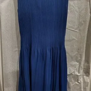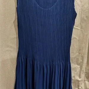 This stylish sundress in a vibrant blue hue features a ribbed and pleated texture, perfect for casual outings. The sleeveless design with a scoop neckline offers a relaxed yet chic look. Its midi length ensures a comfortable and flattering fit, ideal for any laid-back occasion.