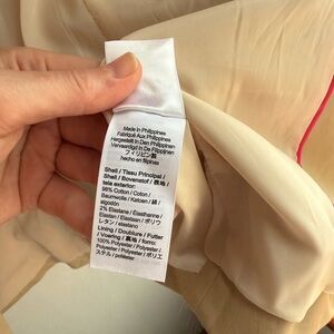 This J. Crew blazer in a sophisticated cream color features a tailored fit with structured shoulders and a minimalist design. Ideal for both business and casual occasions, its smooth, lightweight fabric ensures comfort and style.