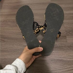 Stylish patent leather leopard print sandals. Perfect for casual outings.