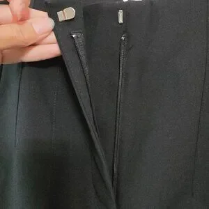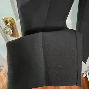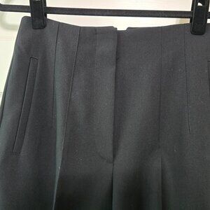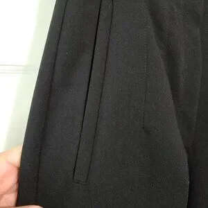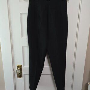 Brand New but the Tag got lost somewhere along the line. Never worn! Beautiful black High waisted cigarette pants with a notch in the waist, faux pockets, long sleek lines and a peg leg style.
