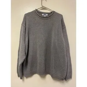 Experience comfort and style with this Old Navy crewneck sweater in a solid gray hue. Crafted from a thick knit material, it features ribbed trim at the neckline and cuffs, offering a relaxed fit perfect for casual wear. The subtle contrast stripe detail adds a touch of sophistication to this classic piece.