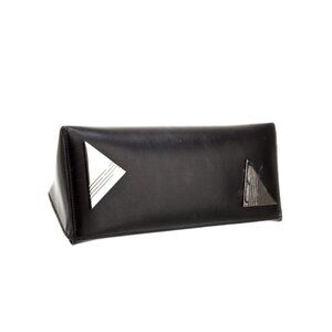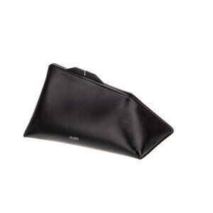 Black bag featuring magnetic closure, single compartment, asymmetric design, front logo print.