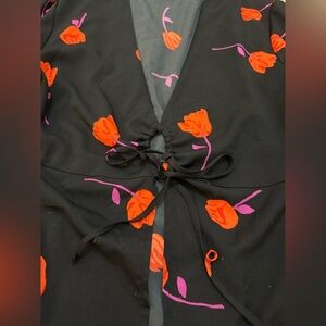 Urban Outfitters black purple orange floral wrap blouse women’s size medium