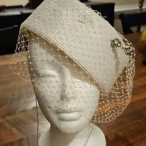 Vintage Caprice white hat 50s / 60s. with bow and veil and complete with a stick pin on front. Wear anywhere. Excellent vintage condition.