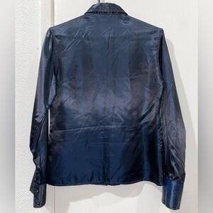 Glossy navy blouse with a sleek design. Ideal for formal events.